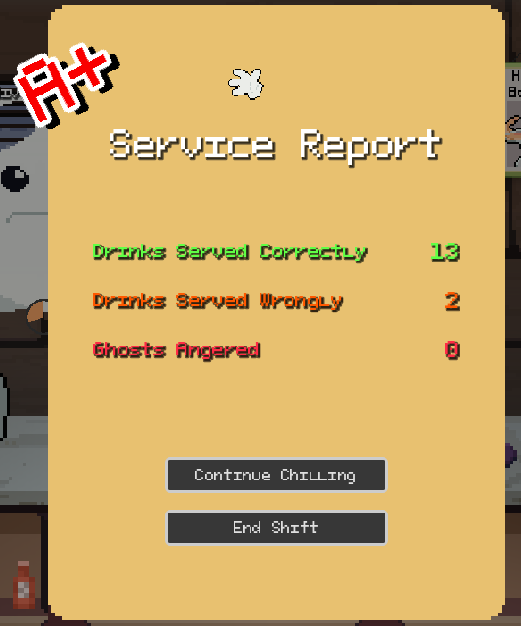 - You play as a Bartender serving Spirits (cocktails) to Spirits (ghosts)